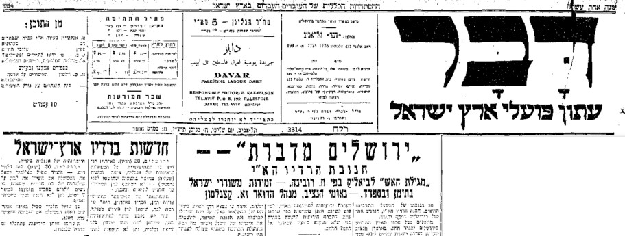 הידיעה על חנוכת השירות שהתפרסמה ב 31 במרץ 1936 בעתון דבר. להורדת העמוד המלא לחצו כאן